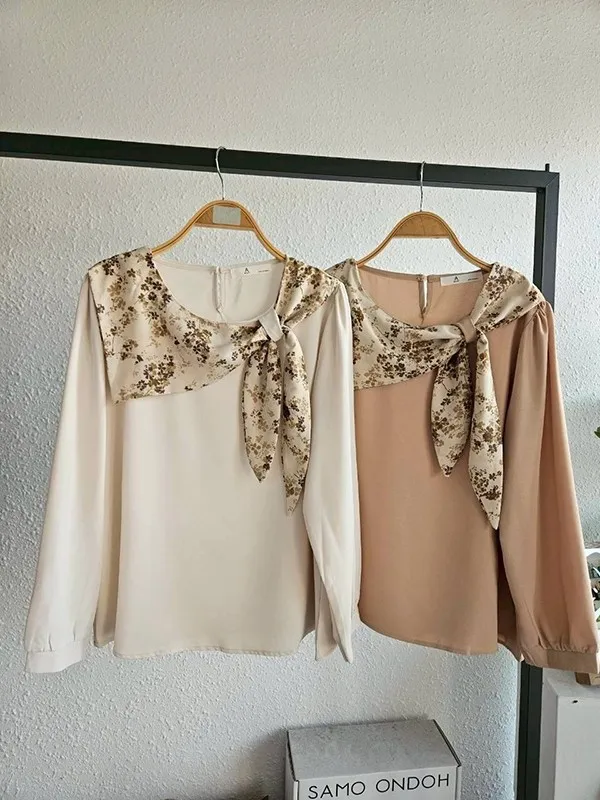 花領拼接側穿帶素雅衣