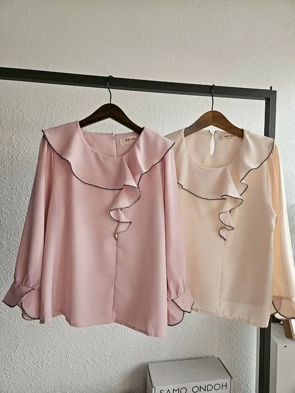 側領滾邊荷造型衣
