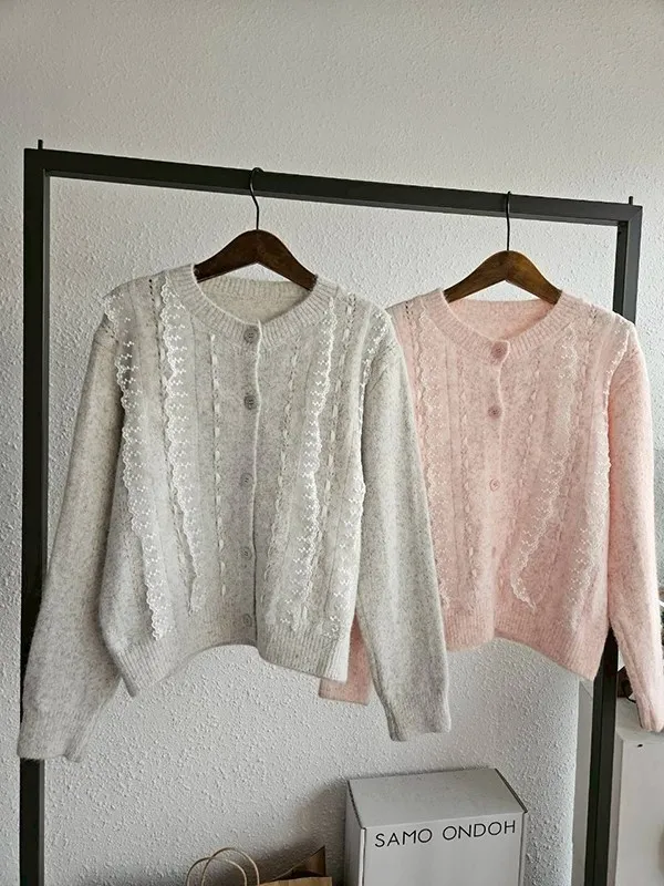 前接條蕾開扣針織衣