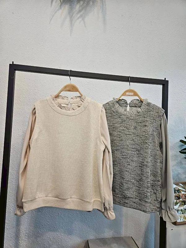 荷領身拚針織甲兩件衣