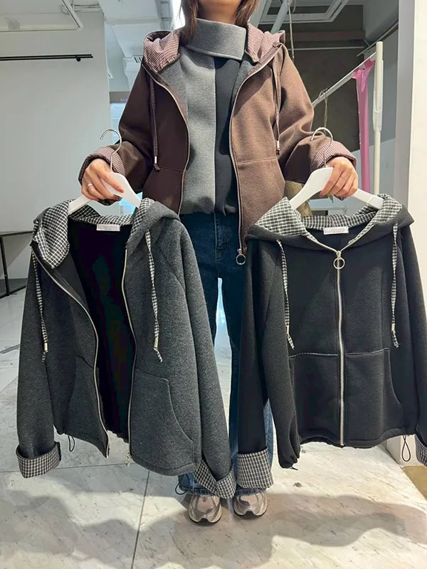 帽內手袖接格厚實針織外套