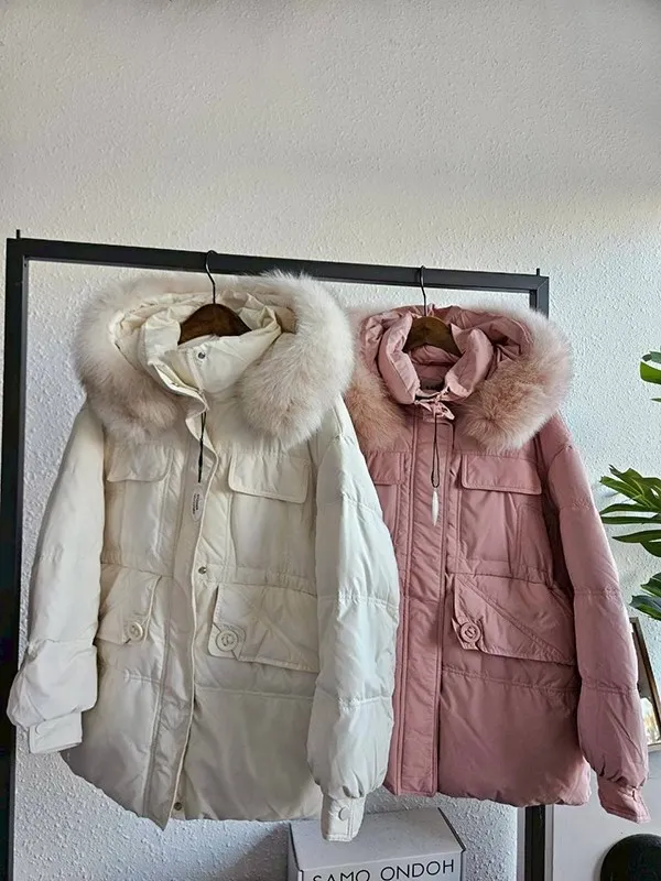 圈毛可拆胸翻蓋設計羽絨外套