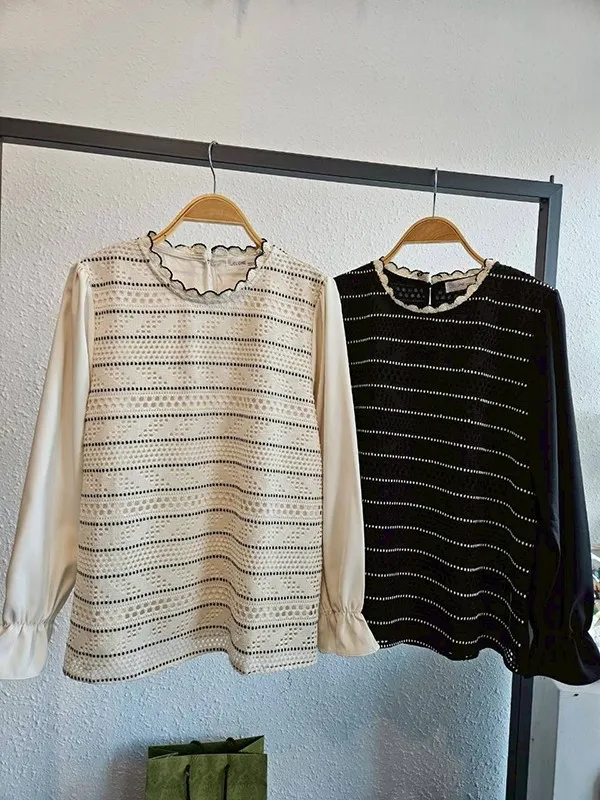 波邊領身拼接洞條針織衣