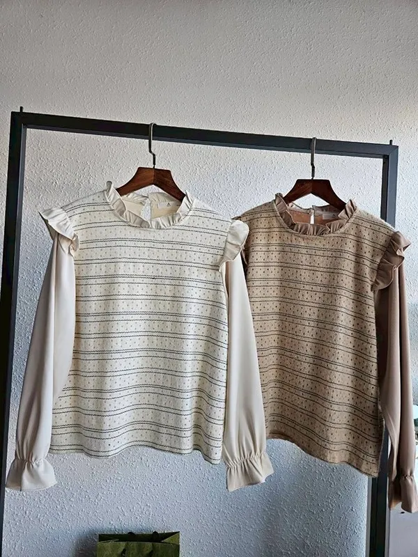 領肩荷身條文毛料蕾衣