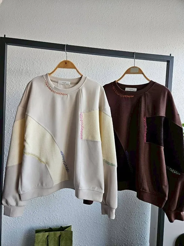 彩車線坑條拼接造型衣