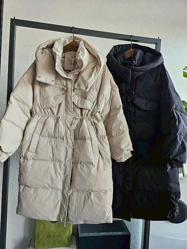 腰抽繩長板連帽羽絨外套