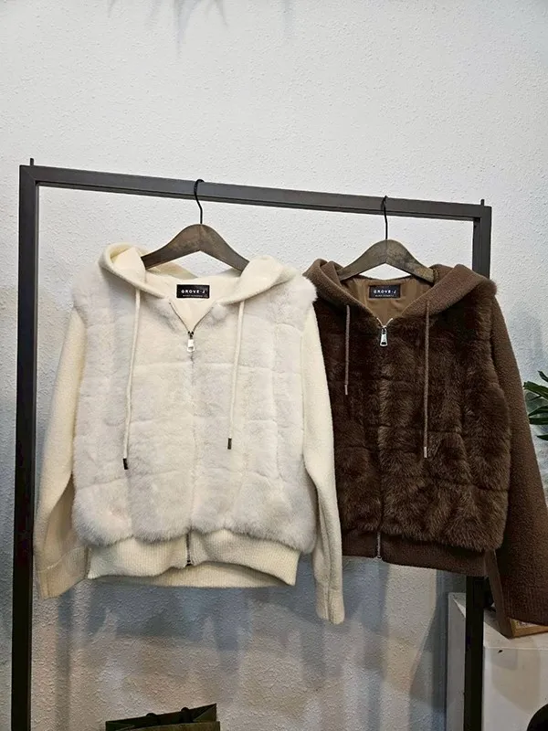 身接毛茸茸後磅針織帽外套