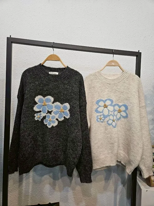 勾針釘珠花圖針織衣