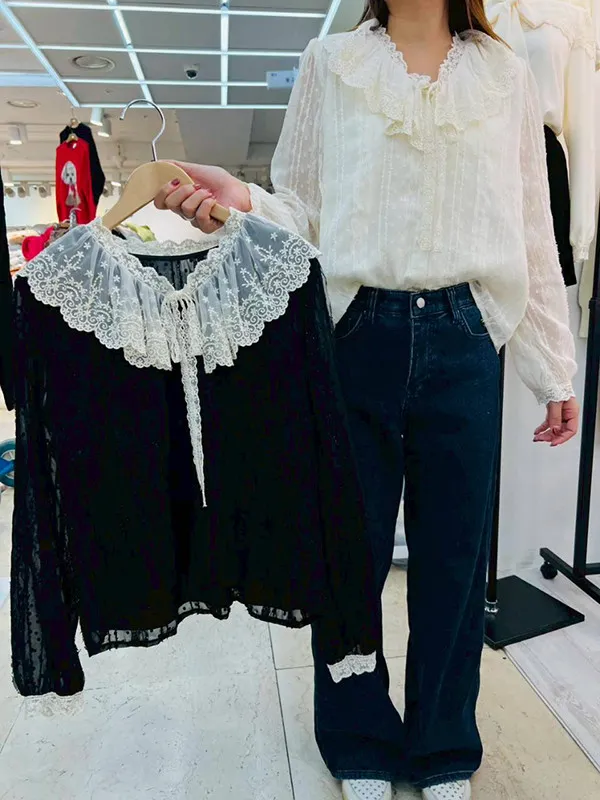 特價-V領蕾綁帶立體雪紡紗衣