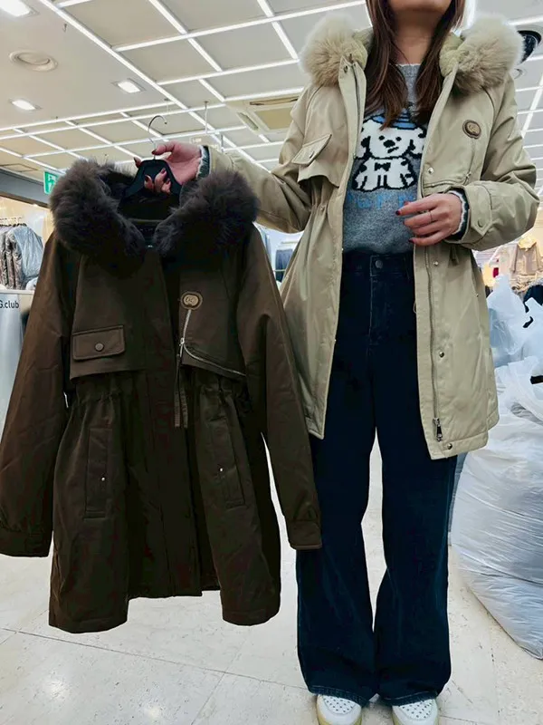 特價-狐狸圈毛胸皮標拉鍊帽外套