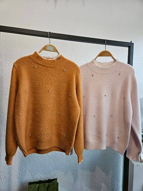 領蕾釘珠鑽針織衣