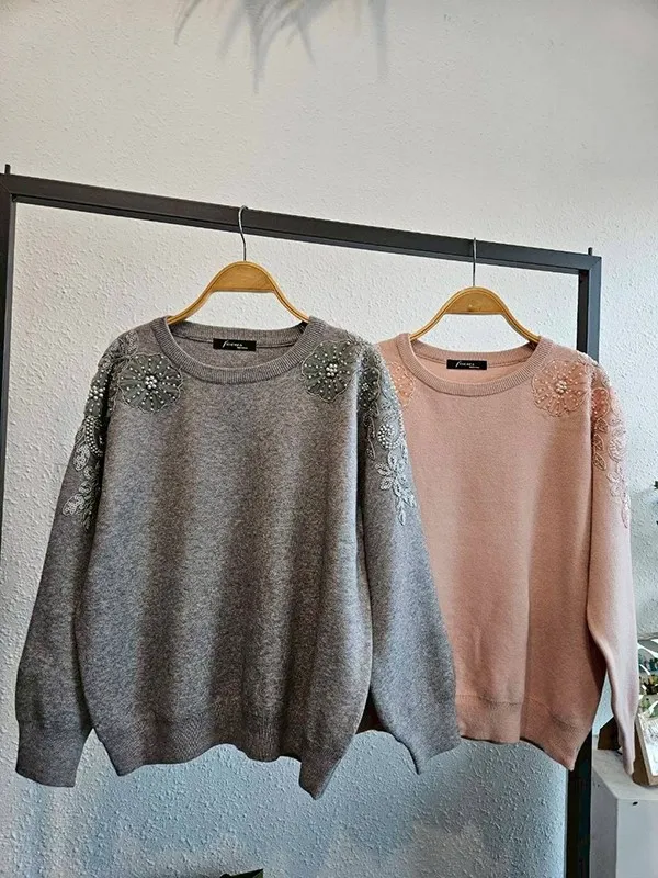 肩袖珠紗花蕾針織衣