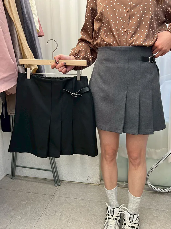 側皮扣壓折褲裙