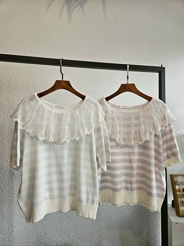 圓蕾領條紋針織衣