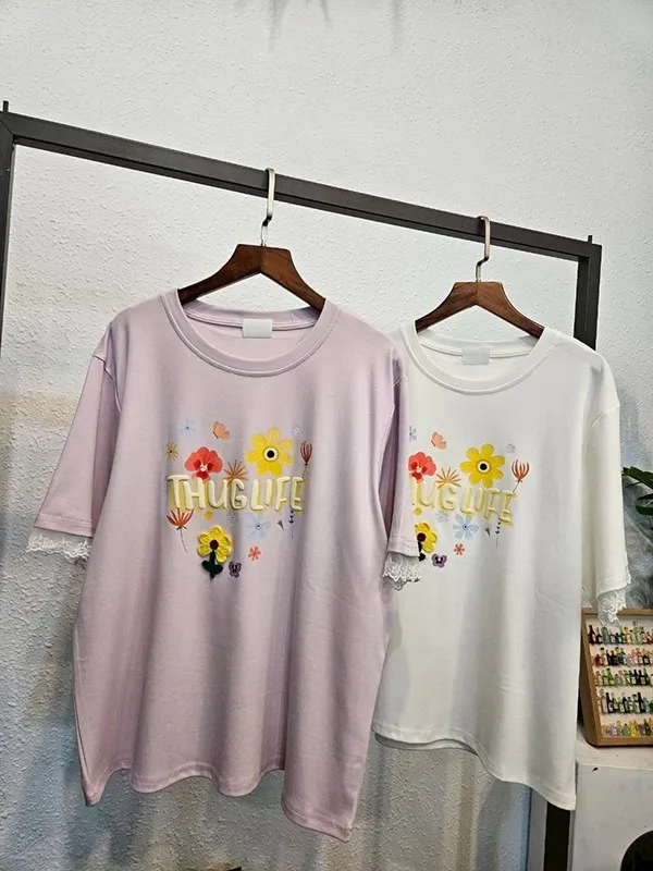 袖接蕾字母小花衣