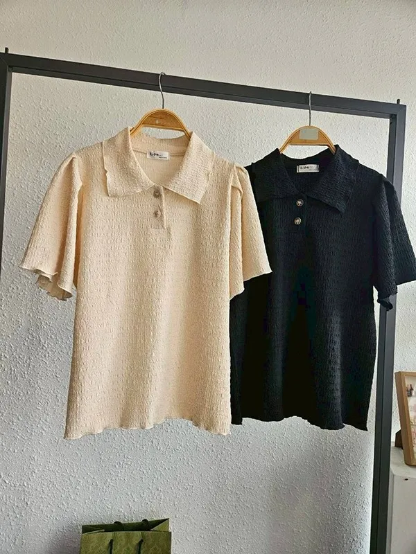開2扣立體棉布襯衫領衣