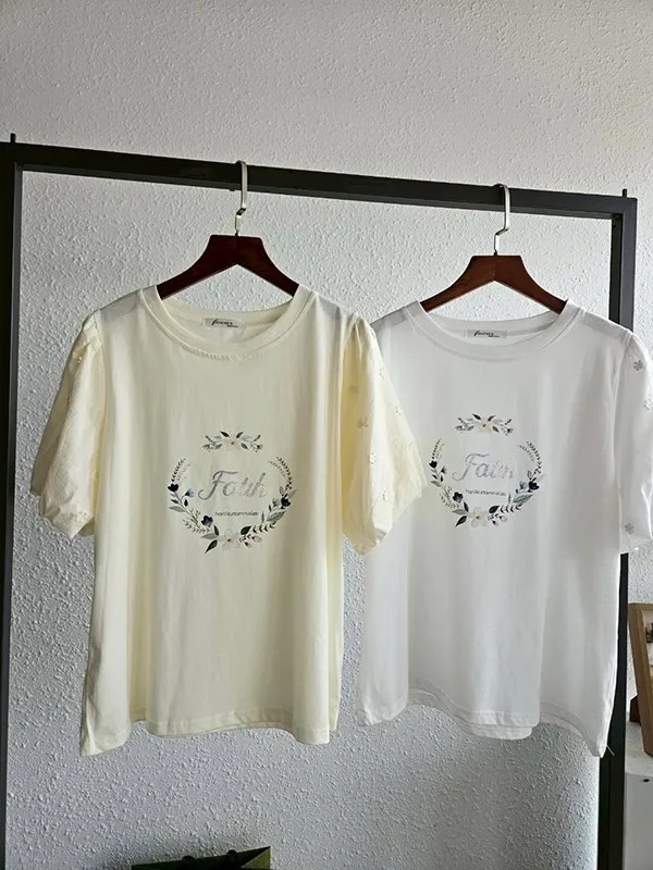 袖拼接刺繡小花身花框字母衣