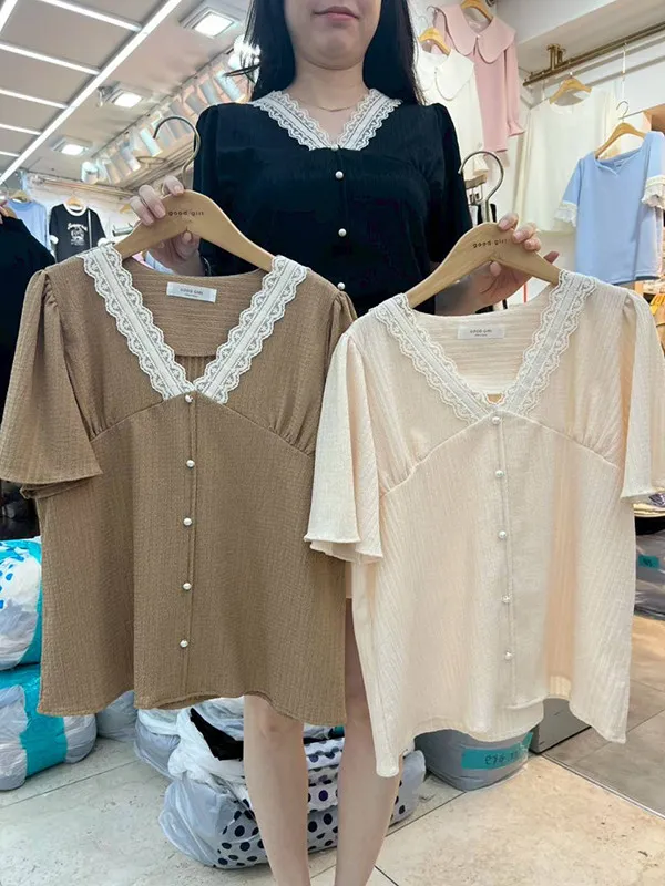 V領蕾排釦衣